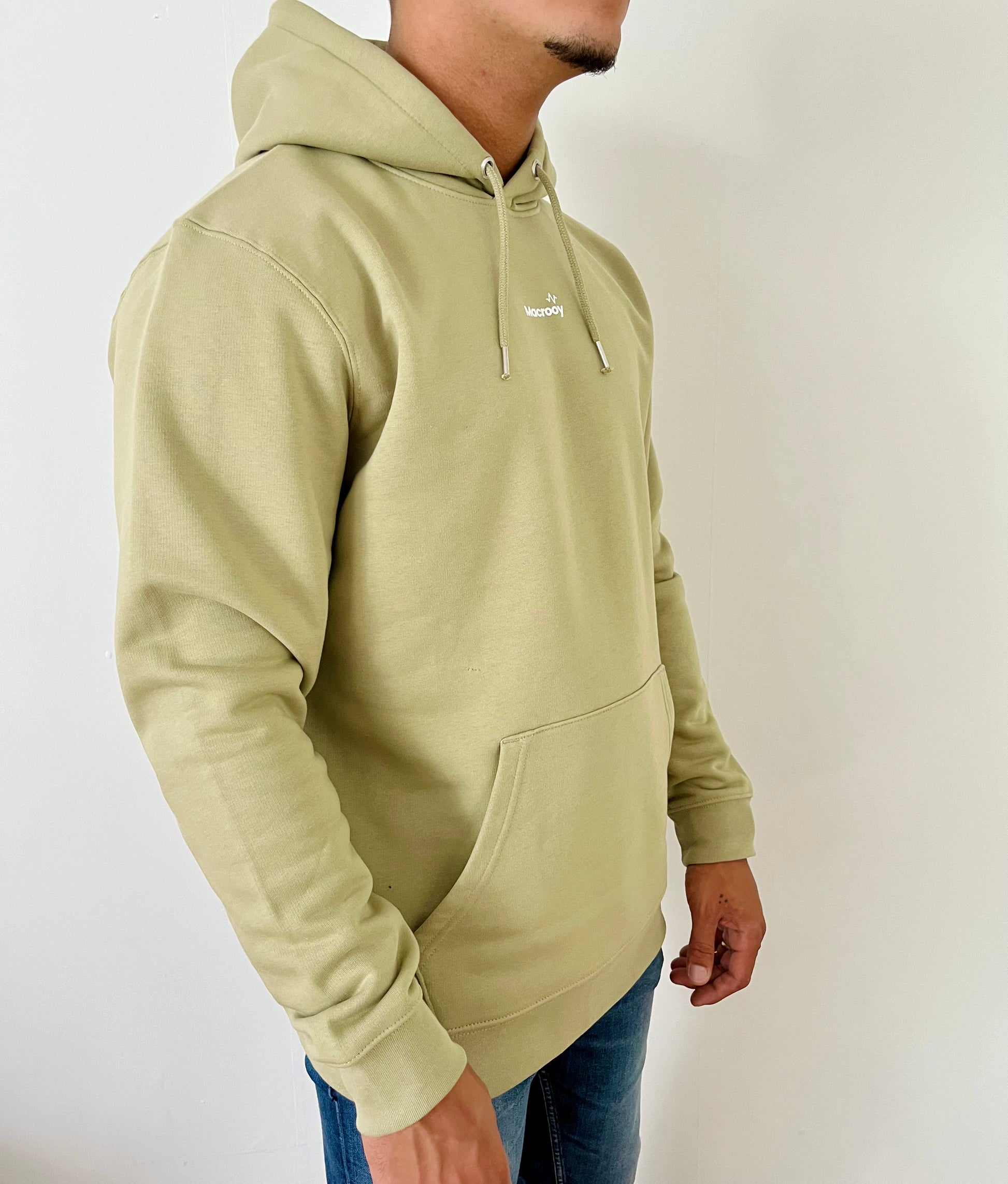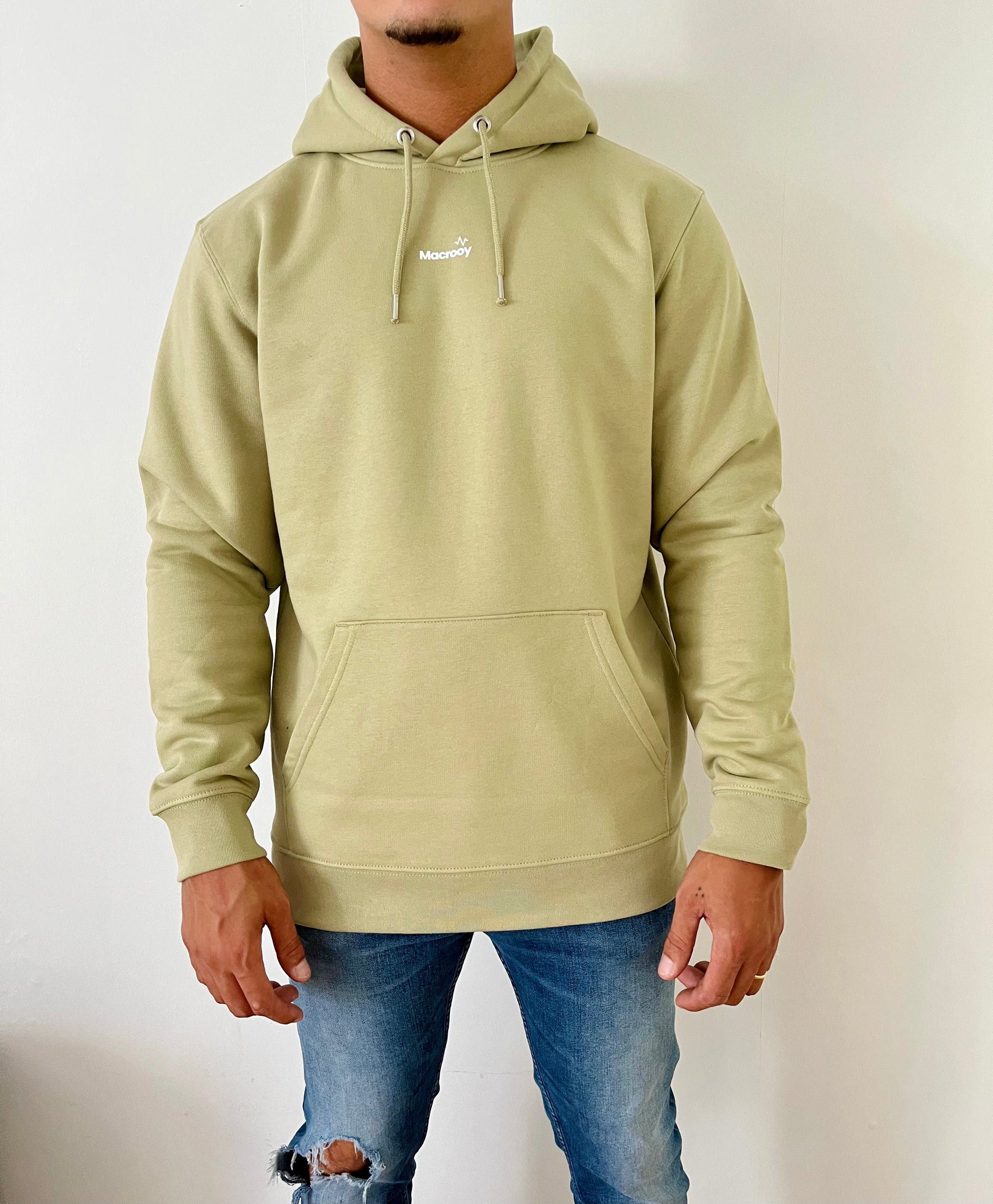 Unisex hoodie van sweatstof met gevoerde capuchon, buidelzak, lange mouwen en elastische tailleband.