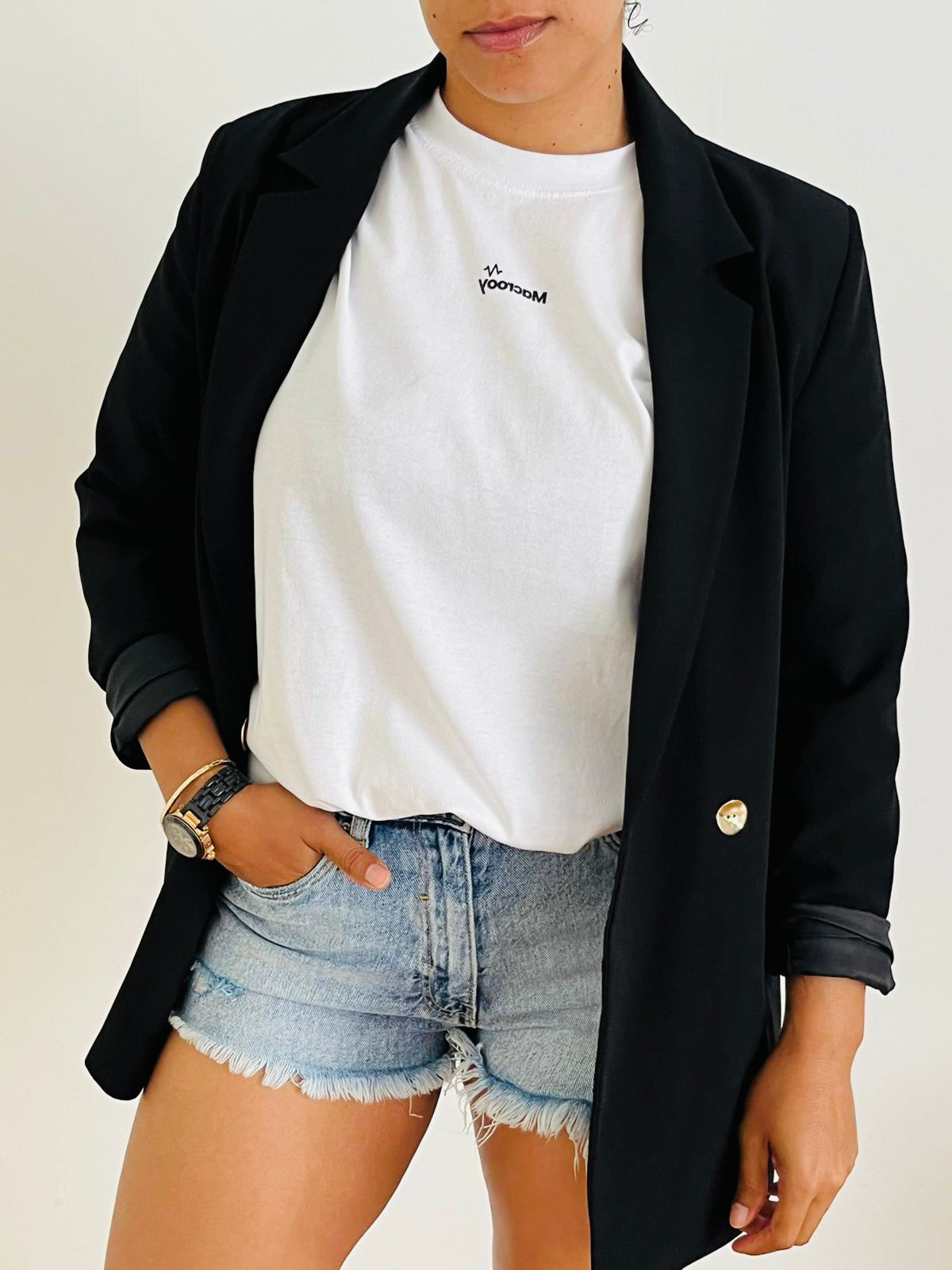 Unisex T-shirt van katoen met een ronde halsopening en een rechte belijning aan de onderkant.